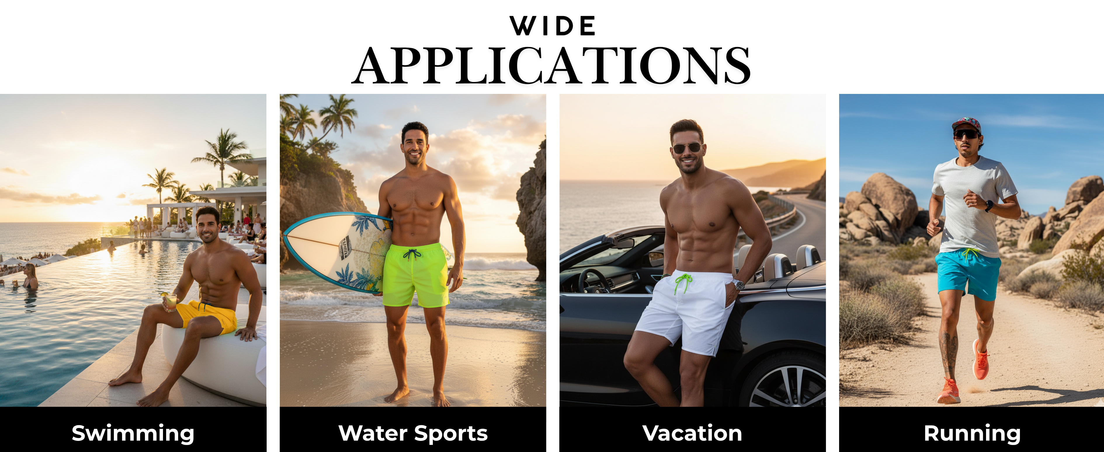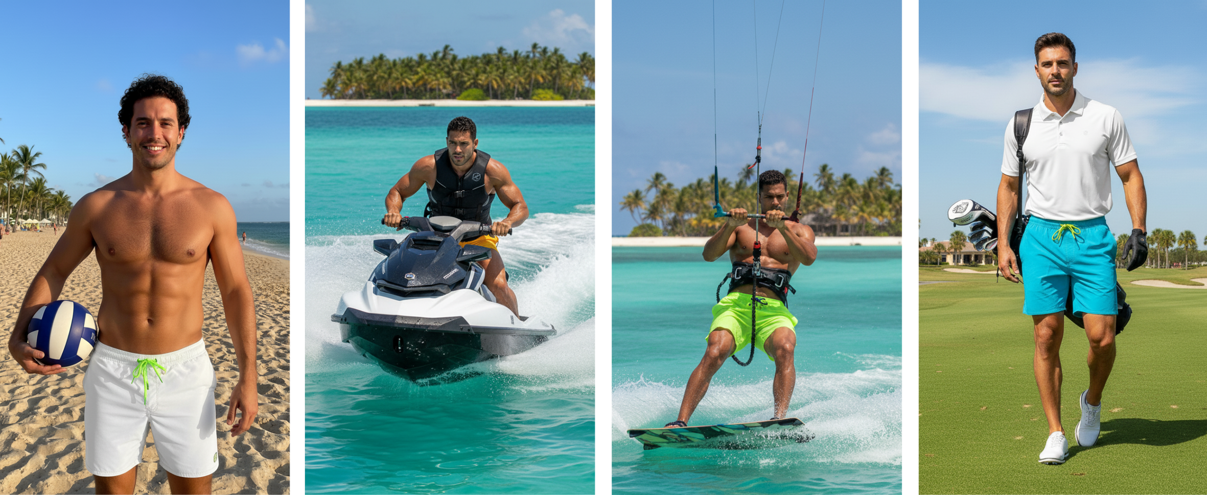 Introducing the 4 Resort Shorts Kit by Vonpiper, where comfort, style, and versatility meet in a vibrant collection of four stunning summer colors: white, blue, yellow, and neon green. Perfect for those who wish to live every moment with flair, whether you're lounging at the beach, exploring the city, or traveling.